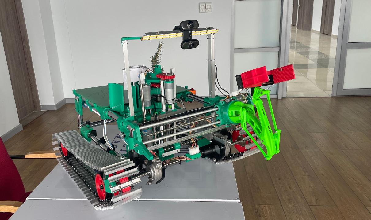 Ученица Назарбаев Интеллектуальной школы физико-математического направления в Талдыкоргане Алиева Аяулым Маратовна отметила: «Данный проект представляет собой полномасштабного, готового робота. В автоматическом режиме высаживает саженцы с закрытой корневой системой, деревья любых пород. Робот управляется автономно на основе искусственного интеллекта, что позволяет ему обходить препятствия, такие как камни, деревья и овраги. Стоит отметить, что этот проект не только сажает деревья, прогнозирует, как будет расти лес, но и очищает природу от мусора. При обнаружении мусора робот автоматически собирает его с помощью манипулятора и помещает в мусорный контейнер, вмещающий до 20 кг.”