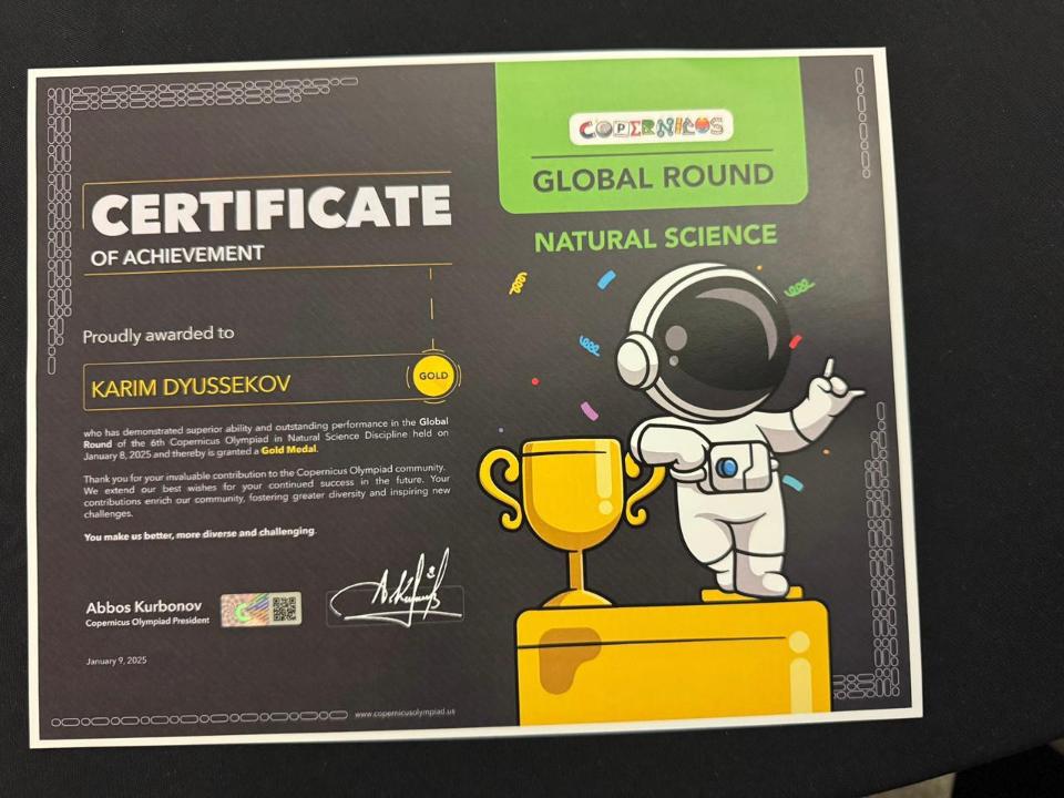 Столичный школьник Карим Дуйсеков стал самым молодым участником Всемирной олимпиады и завоевал награду в номинации «Естественные науки», сообщается на официальном сайте акимата Астаны.