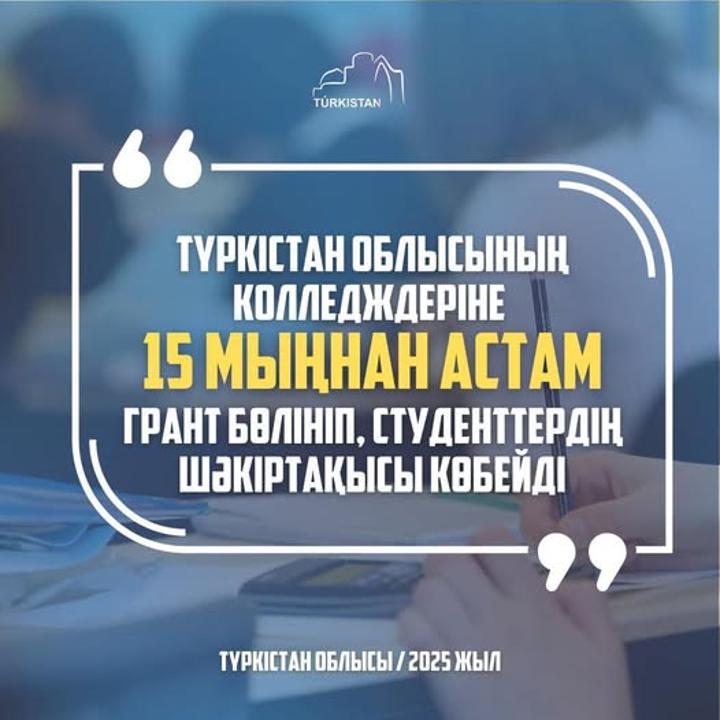 Президент Касым-Жомарт В своем Послании народу Казахстана Токаев объявил 2025 год «Годом рабочих профессий». Он сказал, что за это время необходимо реформировать систему технического и профессионального образования. Вместе с тем, для подготовки высококвалифицированных кадров в Туркестанской области приняты меры социальной поддержки студентов. Финансирование на душу населения увеличилось с 2025 года. В среднем на одного студента в месяц выделяется 33 943 тенге.
