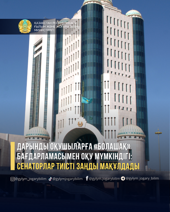 ОБУЧЕНИЕ ТАЛАНТЛИВЫХ УЧЕНИКОВ ПО ПРОГРАММЕ «БОЛАШАК»: СЕНАТОРЫ ОДОБРИЛИ СООТВЕТСТВУЮЩИЙ ЗАКОН