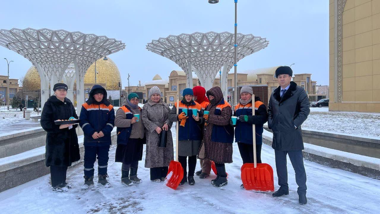 В этом году в стране объявлен “Годом рабочих профессий”, призванный подчеркнуть роль каждого человека труда в обществе. В этой связи, сегодня коллектив Центра «Ұлы дала елі» чествовал всех, кто обеспечивает чистоту города. В зимнем воздухе, споря с рассветом, уборщицам, которые приступили к работе, подарили теплый чай и сладости и подняли настроение.