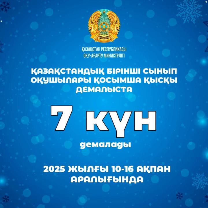 Дополнительные каникулы для учащихся первых классов продлятся 7 календарных дней с 10 по 16 февраля 2025 года.