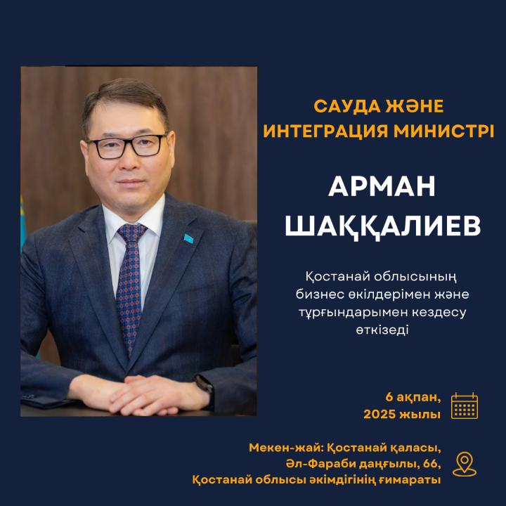 6 февраля 2025 года министр торговли и интеграции Республики Казахстан Арман Шаккалиев проведет встречу с представителями бизнеса, жителями, а также личный прием граждан.