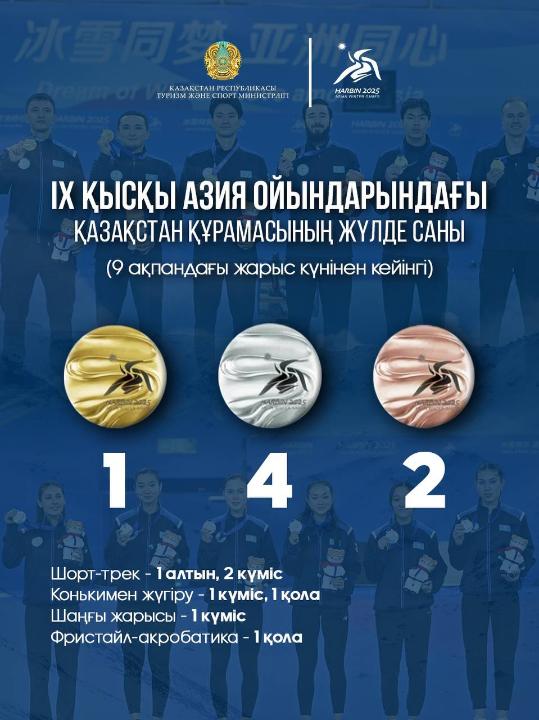 IX Зимняя Азиада: по итогам соревновательного дня на 9 февраля в активе сборной Казахстана — 1 золотая, 4 серебряные и 2 бронзовые медали