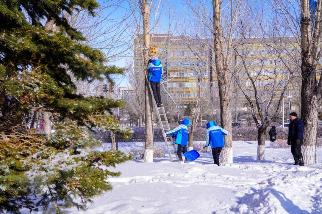 В рамках акции «Чистый Казахстан» студенты столичного строительно-технического колледжа совместно с волонтерами молодежного ресурсного центра «Astana Youth» развесили птичьи гнезда в парке возле мечети аль-Фараби.