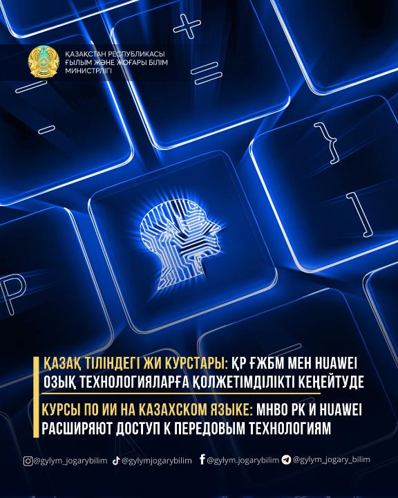 КУРСЫ ПО ИИ НА КАЗАХСКОМ ЯЗЫКЕ: МНВО РК И HUAWEI РАСШИРЯЮТ ДОСТУП К ПЕРЕДОВЫМ ТЕХНОЛОГИЯМ