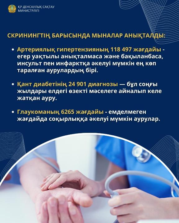В рамках масштабной программы скрининговых обследований в Казахстане за 2024 год было обследовано свыше 3,2 миллиона граждан.