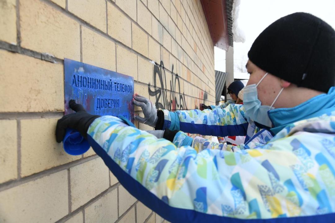 Участники акции закрасили стены с объявлениями о продаже наркотических веществ, чтобы не допустить распространения опасной рекламы.