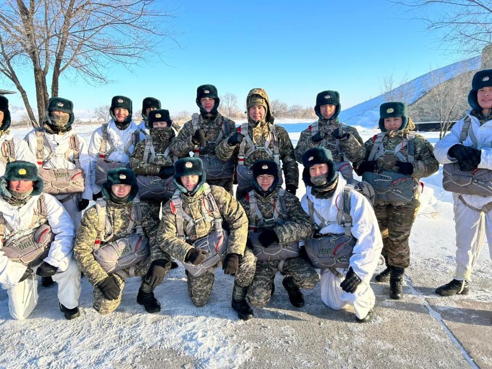 Среди «перворазников» восемь девушек 37-й десантно-штурмовой бригады имени Героя Советского Союза генерал-майора Ивана Панфилова. С совершением первого прыжка их поздравил командир бригады полковник Алмас Тулегенов.
