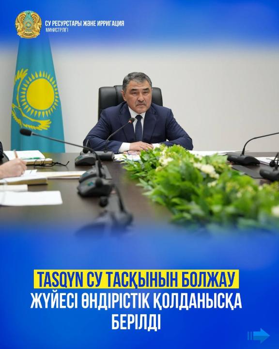 Система прогнозирования и моделирования паводков Tasqyn введена в производственную эксплуатацию. Министр водных ресурсов и ирригации Нуржан Нуржигитов провел аппаратное совещание по вопросам подготовки к паводковому периоду.