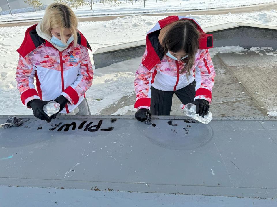 В Астане прошла акция по удалению надписей и граффити, нанесенных вандалами на Атырауском пешеходном мосту, сообщает официальный сайт столичного акимата.