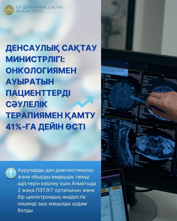 Для улучшения доступности онкологической помощи Министерство здравоохранения в 2024 году запустило 6 новых сетевых ускорителей в 5 регионах страны, что позволило увеличить охват лучевой терапией на 3,2% до 41%, отметила сегодня в своем выступлении на расширенном заседании коллегии глава ведомства Акмарал Альназарова.