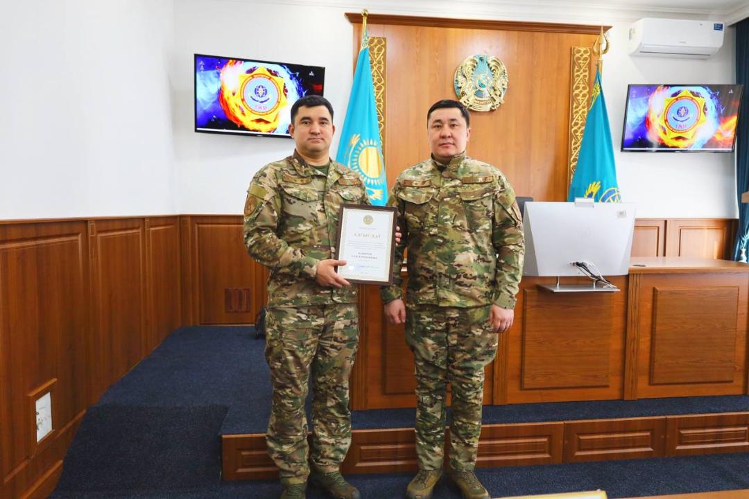 Вице-министр по чрезвычайным ситуациям генерал-майор Кеген Турсынбаев вручил благодарственные письма Администрации Президента Республики Казахстан сотрудникам Департамента кадровой и воспитательной работы МЧС Дәурену Сабыраеву Сәрсенбекұлы и Ержану Анапьянову. Награды были вручены за значительный вклад в организации «Уголок пожарных и спасателей», проведенной в рамках фестиваля «Город рабочих профессий».
