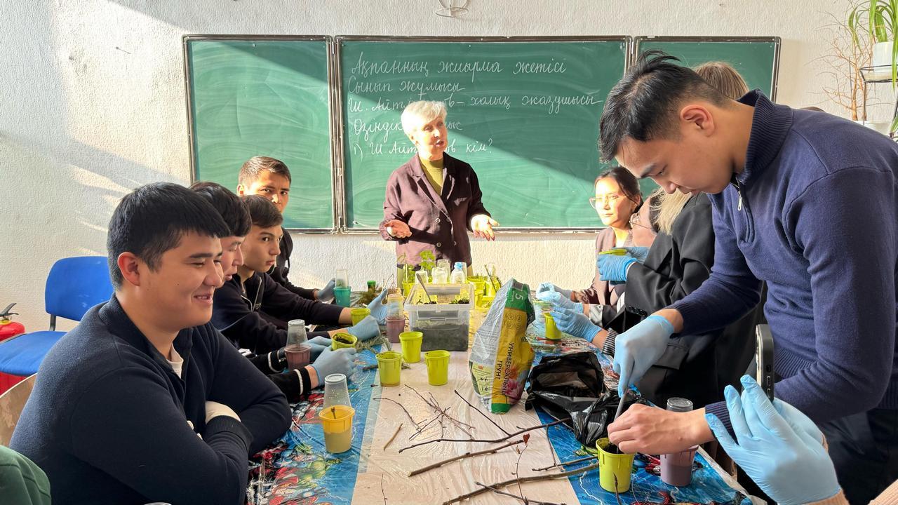 Студенты Карагандинского индустриального университета выращивают саженцы деревьев и кустарников из семян и черенков. Когда рассада подрастёт и окрепнет, её высадят на территории вуза.