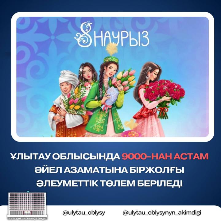 Ко Дню 8 Марта предусмотрена единовременная социальная выплата в размере 20 000 тенге.