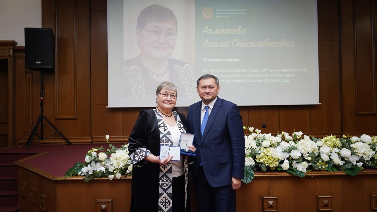 Кроме того, в ходе праздничной церемонии сотрудники науки за заслуги в развитии науки и высшего образования, а также за активную общественную деятельность награждены орденами «Құрмет» и «Парасат», а также медалями «Ахмет Байтурсынулы» и «За заслуги в развитии науки» Министерства науки и высшего образования РК.