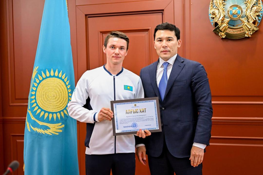 В завершение встречи министр вручил Ерболу Хамитову и Александру Герлицу Почетные грамоты, а также благодарственные письма тренерам.
