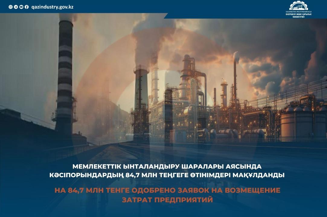 «Всего поступило 145 заявок от предприятий на возмещение части затрат, связанных с повышением производительности труда и продвижением товаров, работ и услуг на внутреннем рынке. Сумма возмещения составила 84 миллиона 734 тысячи тенге», – говорится в сообщении.