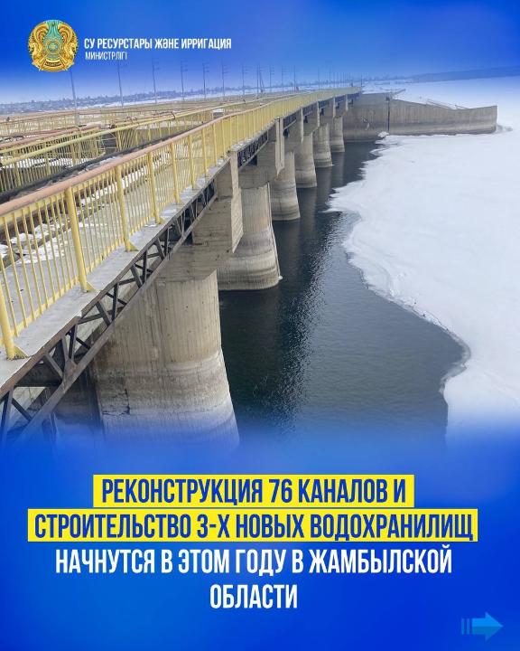 Реконструкция 76 каналов и строительство 3-х новых водохранилищ начнутся в этом году в Жамбылской области