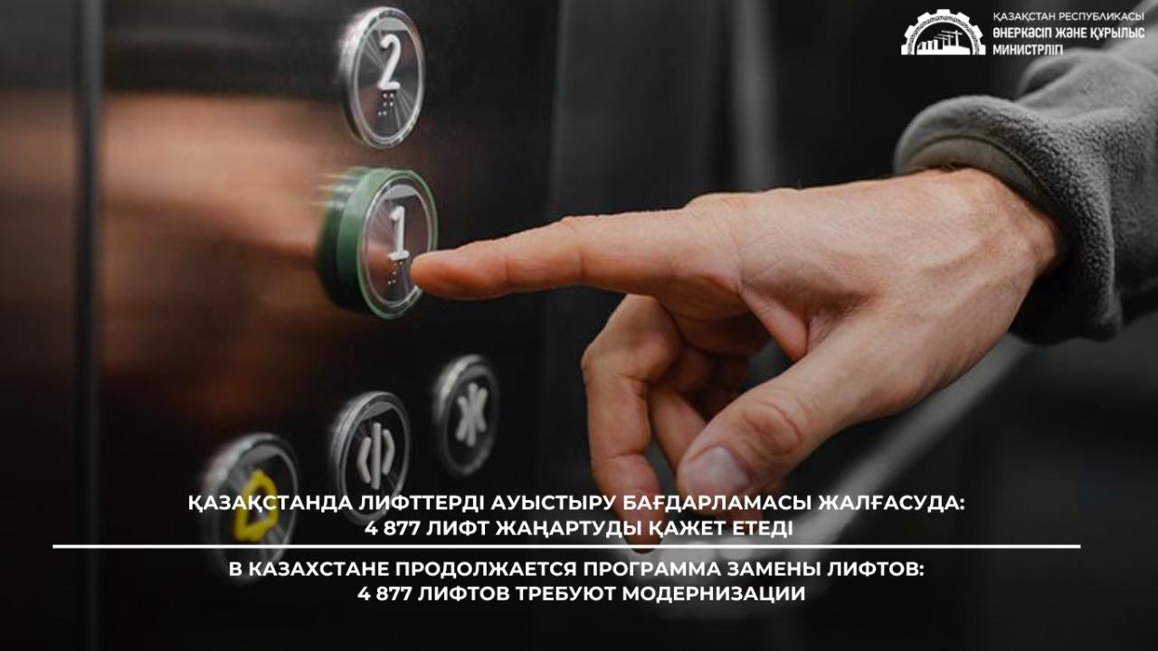 По данным местных исполнительных органов, на сегодняшний день в жилищном фонде Казахстана насчитывается 34 811 лифтов. Из них 4 877 лифтов эксплуатируются более 25 лет и подлежат замене. В рамках технического обслуживания капитальный ремонт необходим 3 271 лифту.