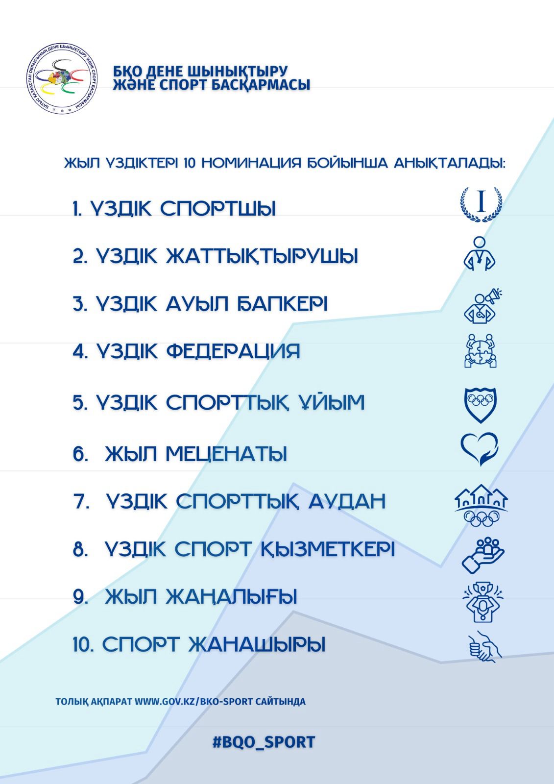 Управление физической культуры и спорта Западно-Казахстанской области опубликовало положение о выявлении лучших спортсменов 2025 года. Согласно правилам, по итогам года “лучшие” будут определяться на основе утверждённого рейтинга. (Полную версию можно прочитать на официальном сайте управления).