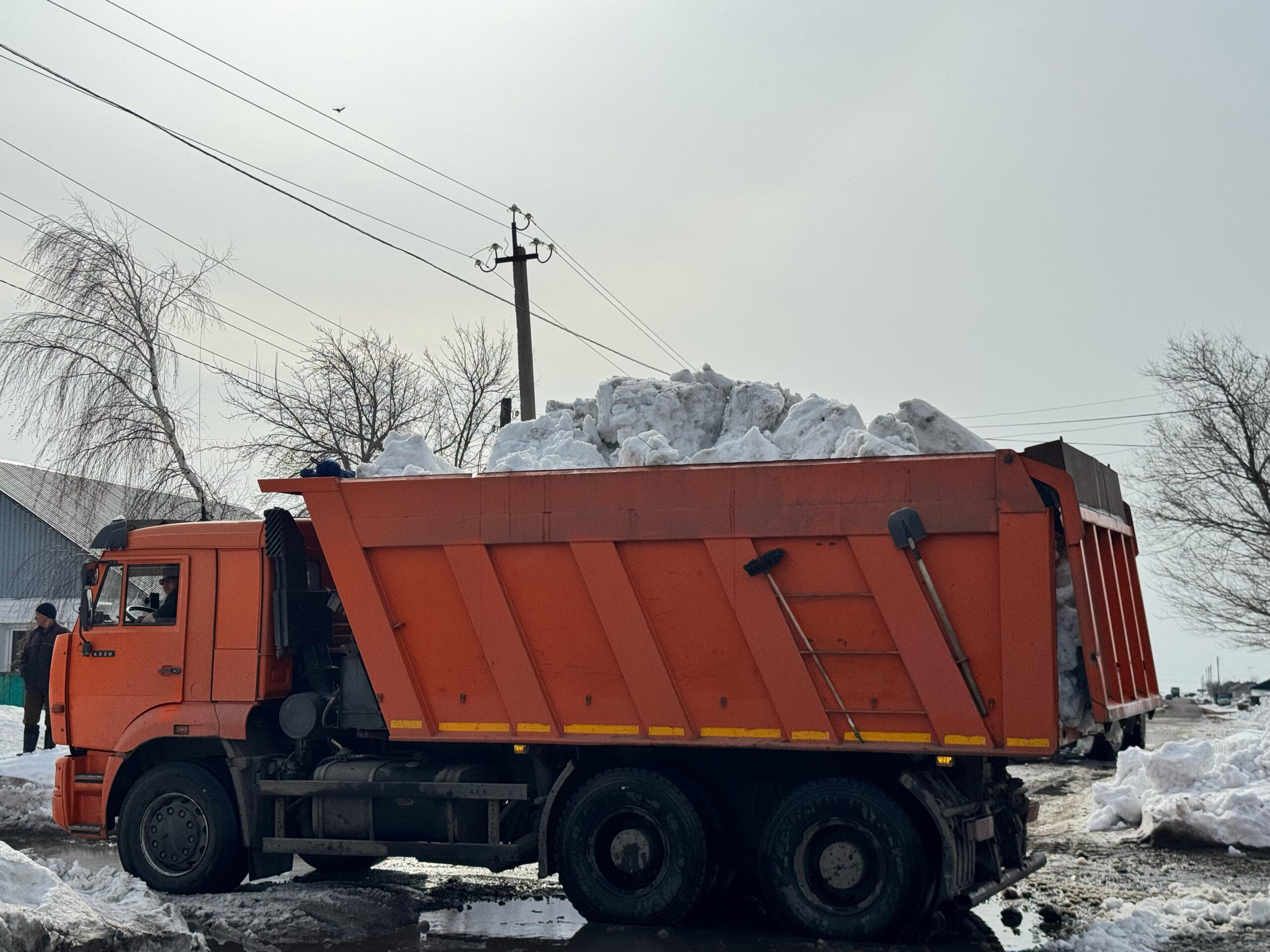 В связи с большим скоплением снега в городе Сергеевка ежедневно продолжается его вывоз с крайних улиц.