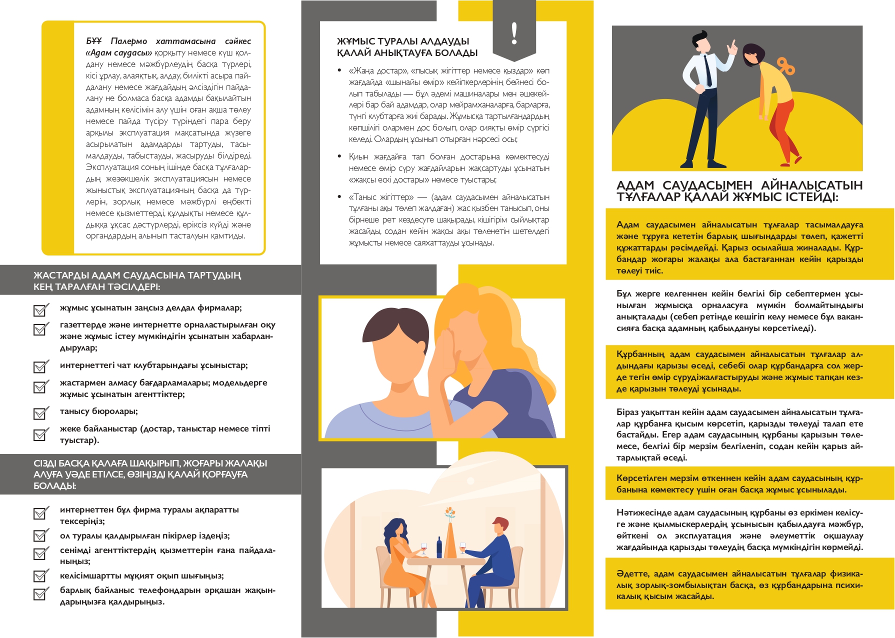 Представительство Национального центра по правам человека в Актюбинской области в целях предотвращения ситуаций, связанных с торговлей людьми представляет во внимание информационные бюллетени, подготовленные