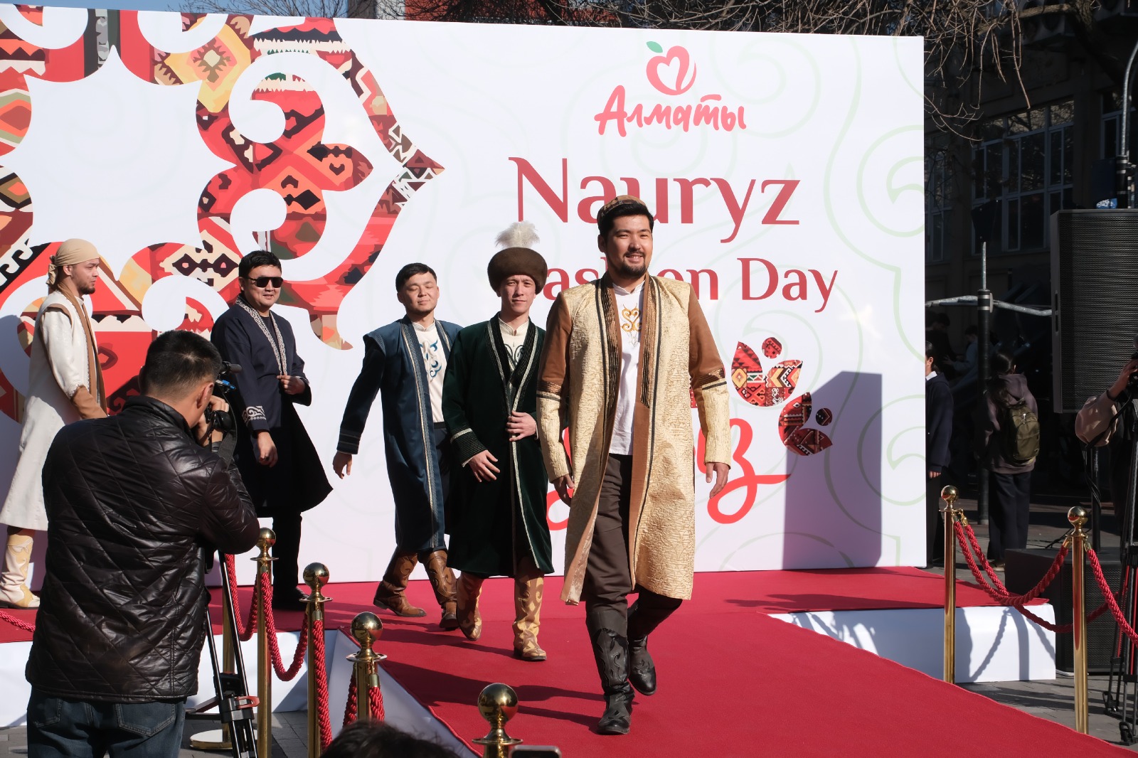 В Алматы прошел модный показ Nauryz Fashion Day, приуроченный ко Дню национальной одежды в рамках декады Наурызнама. Главной особенностью мероприятия стало то, что по подиуму могли пройти не только модели, но и все желающие зрители, которые пришли в национальной одежде или в нарядах в этностиле.