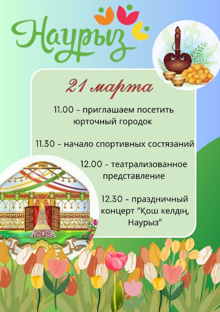 Приглашаем посетить празднование Наурыз мейрамы 21 марта 2025 года на Центральной площади поселка Тобол. В программе вас ожидает: юрточный городок, занимательные спортивные состязания и много интересного