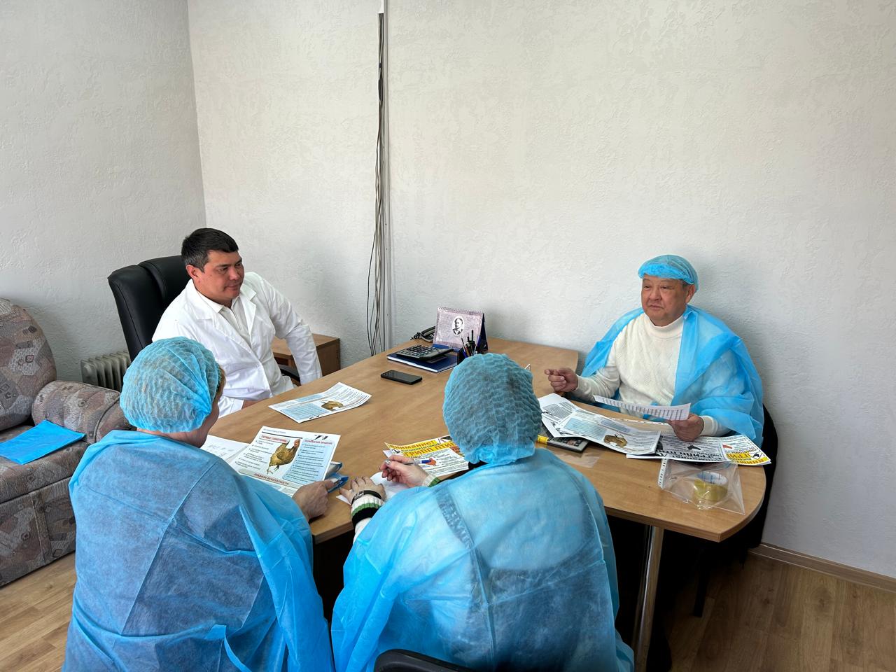 Исполнительный директор птицефабрики Жарасбаев А.Е. и ветеринарный врач Писаркас Т.В. подробно рассказали о принятых мерах по исключению контакта диких и синиатропных птиц с кормами, водой и помещениями, в которых содержаться птицы. На сегодняшний день на птицефабрике содержаться 120 тысячи голов птиц, очередной завоз молодняка планируют в мае месяце. Вакцинацию всего поголовья против гриппа птиц провели вакциной Н5 и Н9. Дано рекомендация руководству птицефабрики и впредь усилить профилактические мероприятия по сохранению благополучной эпизоотической обстановки по высокопатогенному гриппу птиц.