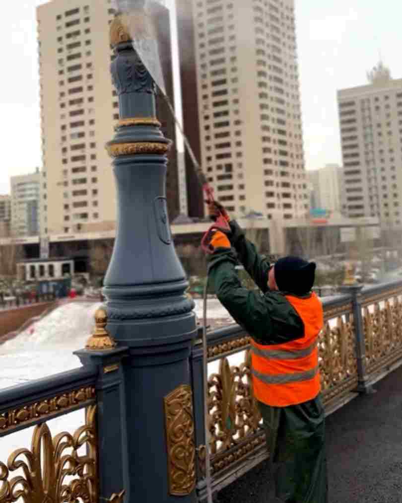 В настоящее время поэтапно очищаем дорожное покрытие, дорожные знаки, ограждения, подземные переходы и дворы от пыли и грязи.