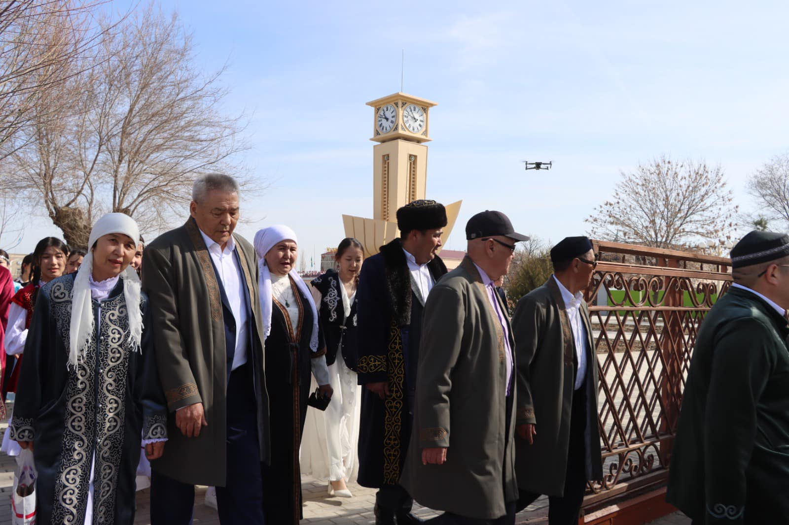 Сегодня в районном центре состоялось масштабное торжественное шествие, приуроченное к «Дню национальной одежды» празднования Великого Дня – Наурыз. В праздничном шествии приняли участие аким района Берик Сарменбаев, ветераны, артисты, молодежь и жители района. Глава района поздравил собравшихся с “Национальным днем одежды“. – От всей души поздравляю вас с Национальным днем одежды, который отмечается в рамках великого праздника Наурыз! Этот праздник–особый день, который прославляет национальные ценности наших предков и возрождает наше историческое наследие. Национальная одежда–это отражение богатой культуры, традиций и духовных ценностей нашего народа. Казахский плащ и камзол, саукеле и тюрбан – сокровища, каждый из которых рассказывает многовековую историю нашего народа. Сегодня в нашем районе мы собрались на торжественное шествие, организованное с целью повышения статуса национальной одежды, популяризации ее красоты и значения. Выражаю благодарность всем жителям района, которые в этот праздник пропагандируют нашу национальную одежду от наших предков! – сказал Берик Абдигаппарович. В ходе шествия жители района проявили большую активность. Среди них были старейшины и бабушки, молодежь и школьники, представители художественных коллективов и этнокультурных объединений. Ветеран Великой Отечественной войны Яхия Тасыров благословил собравшихся и поздравил с праздником Наурыз. Торжественное шествие проходит по главным улицам района, начиная с центральной площади. Исполняли народные песни и кюи, прославляли богатую культуру казахского народа. Каждый участник носил Казахскую национальную одежду и демонстрировал публике красоту, разнообразие Казахской национальной одежды. В то время как женщины носили инкрустированные орнаментом кимешек и саукеле, мужчины носили накидки и носили серебряные пояса на талии. Дети также выделялись своей одеждой в национальном стиле.
