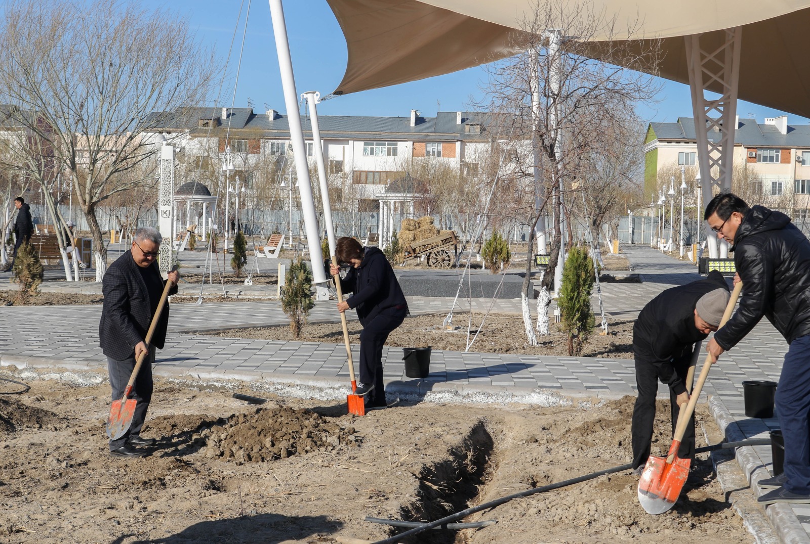 Коллектив и студенты Кызылординского университета имени Коркыт ата в День обновления декады Наурызнама провели работы по озеленению общественных садов «Community Gardens» в рамках общенациональной акции «Таза Қазақстан».
