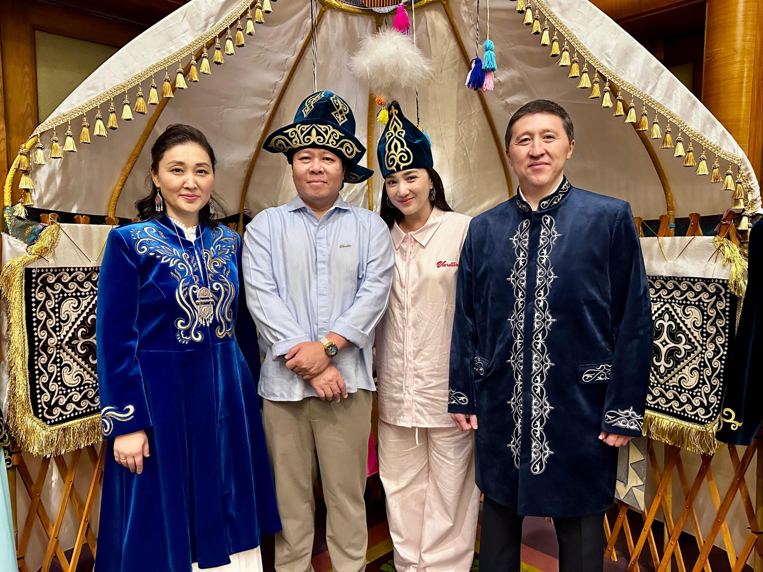 В рамках мероприятия Посольство установило юрту, оформленную в традиционном казахском стиле, и представило национальные костюмы. Гостям предоставилась возможность насладиться звучанием казахского народного инструмента – домбры. Кульминацией вечера стало яркое выступление ансамбля «Катюша», участницы которого – девушки-тайки – исполнили знаменитые казахские танцы, погрузив зрителей в атмосферу национальной культуры.