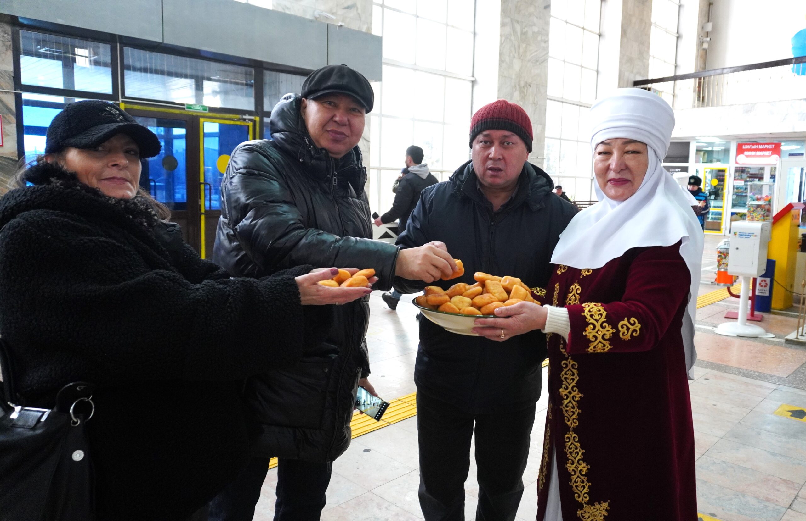 Приезжих пассажиров тепло и радушно встречали, предлагая им ароматные баурсаки — символ гостеприимства и дружелюбия. Это не просто угощение, а акт доброжелательности, который подчёркивает важность гостеприимства в казахской культуре.