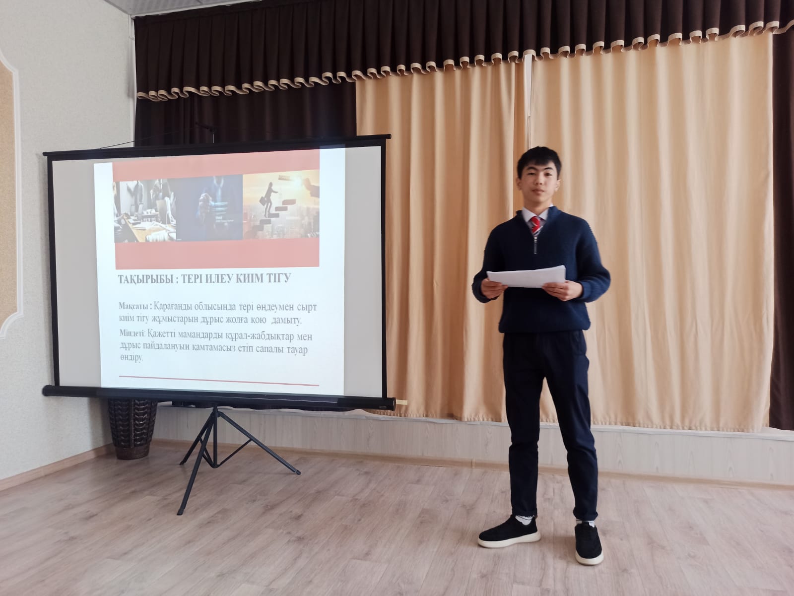 I место: Б.М. Жолдасханова в номинации «Лучшее профориентационное мероприятие» (ОШ№11)