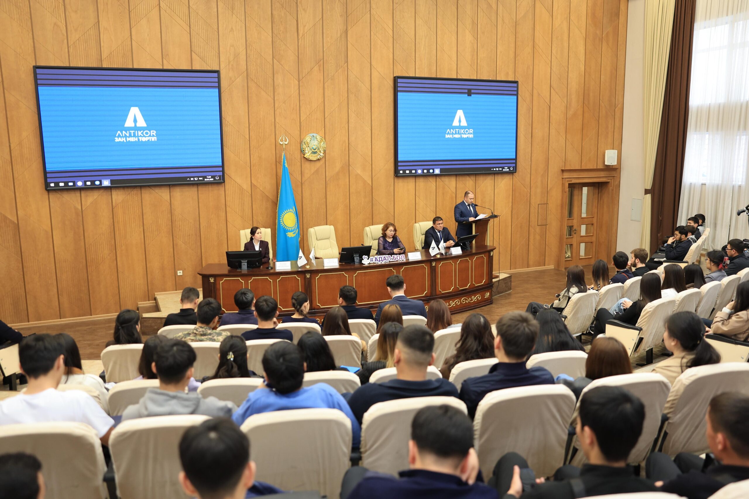 В рамках нарратива «Закон и порядок» по инициативе Антикоррупционной службы города Шымкент состоялся «Час добропорядочности» для студентов ЮКУ имени М.Ауезова и Южно-Казахстанского педагогического университета имени О.Жанибекова.