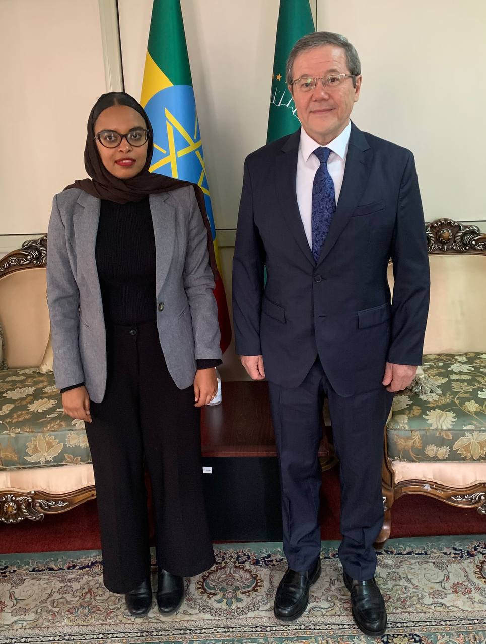 Аддис-Абеба, 25 марта 2025 года – Чрезвычайный и Полномочный Посол Республики Казахстан в Федеративной Демократической Республики Эфиопия и Республике Кения (по совместительству), Постоянный Представитель РК при Африканском союзе Барлыбай Садыков провел встречу с Генеральным Директором Протокола МИД Эфиопии доктором Азиза Гелета Десалень.