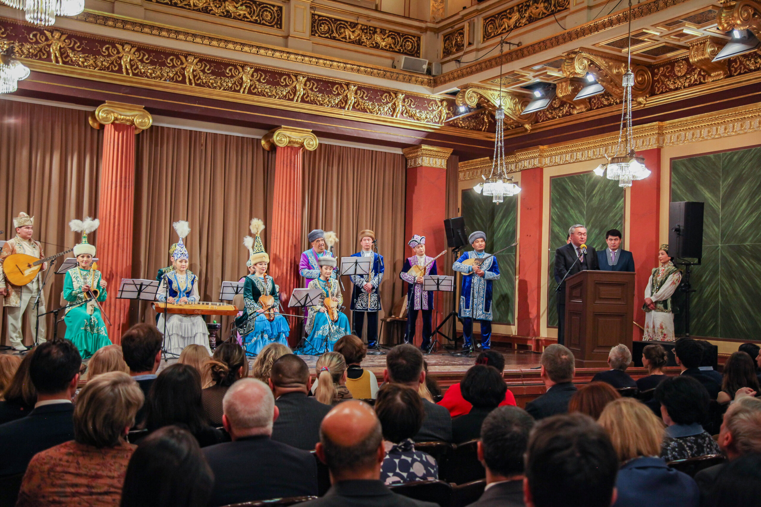Вена, 24 марта 2025 г. – В зале Брамс всемирно известной Венской филармонии прошел торжественный концерт, посвященный главному празднику весны – Наурыз мейрамы. Празднование, организованное Посольством Республики Казахстан при поддержке Акимата Атырауской области, собрало представителей дипломатического корпуса, СМИ, деловых и культурных кругов Австрии, а также членов казахской диаспоры и студентов, проживающих в Вене.