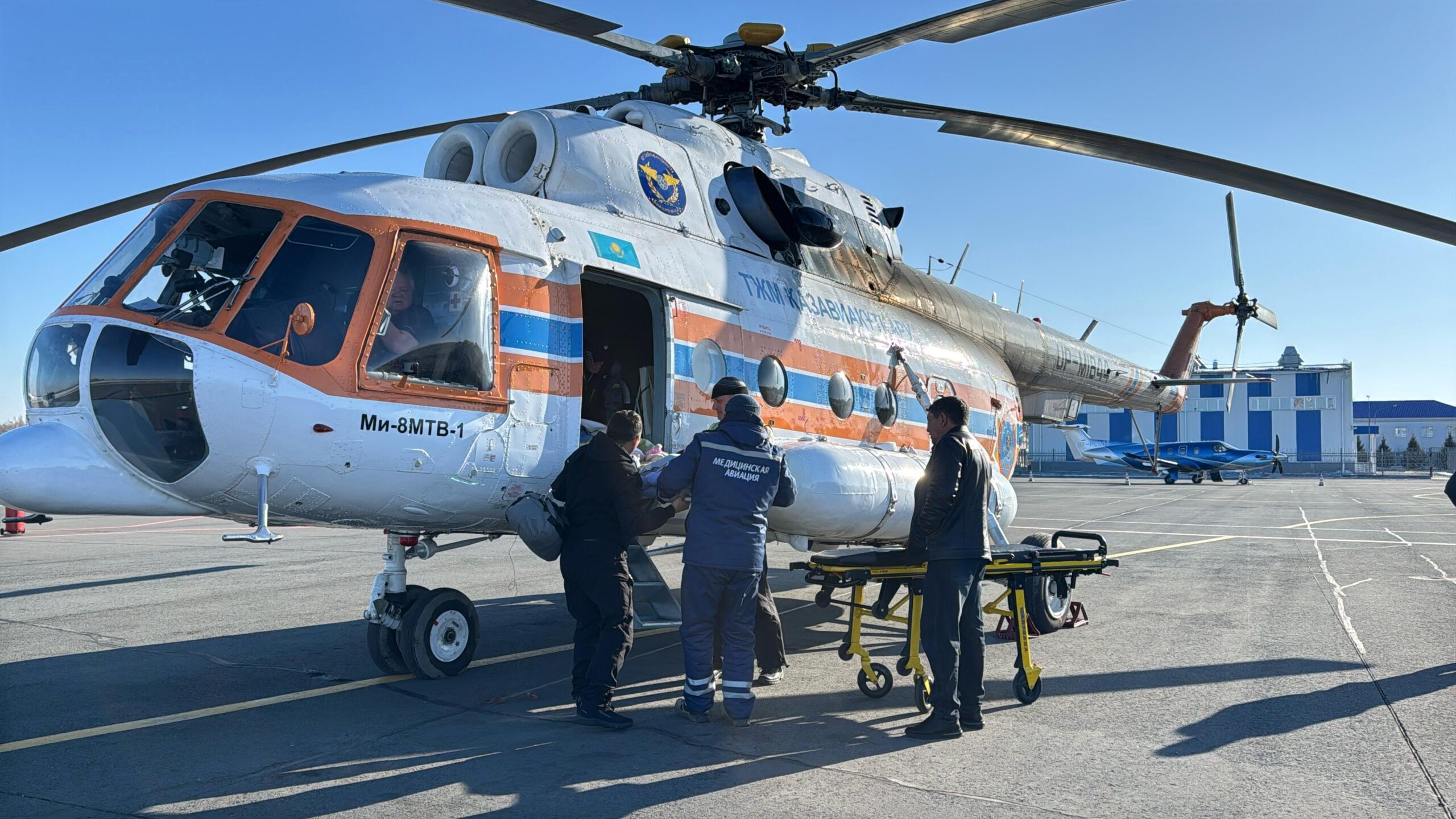 Пилоты «Казавиаспас» МЧС РК Анатолий Козловский и Бауржан Бутенбаев совершили транспортировку ребенка на вертолете «Ми-8» из района Улкен Нарын в Усть-Каменогорск для оказания экстренной медицинской помощи. На борту сопровождение маленького пациента осуществляла бригада врачей санавиации.