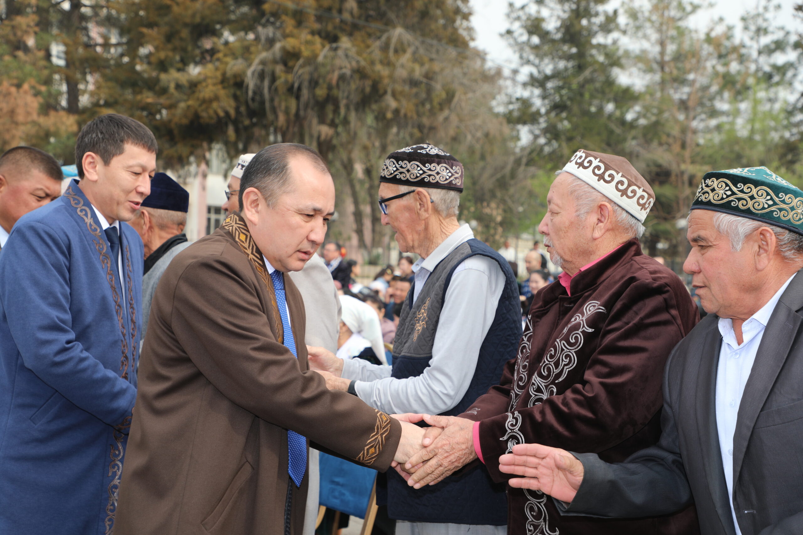 В праздничном мероприятии приняли участие аким района Арман Абдуллаев, председатель районного маслихата Рысбек Асылбекович, депутаты Туркестанского областного маслихата Алмас Салимов, Жанибек Сулейменов, председатель районной организации ветеранов Мустапа Сулейменов, депутаты районного маслихата, которые организовали в каждой юрте такие мероприятия, как: «Құрқа шашу», «Ерулик», «Бесікке салу», «Сүрға салу», «Сүрға салу», «Тілашар», посетили национальные традиции. По просьбе жителя района Арман Абдуллаев по традиции «Тұсау кесер» прорезал пут малышу и пожелал успехов а старшие благословили. Казахские обычаи и традиции, национальная одежда, еда, орнамент украсили мероприятие.