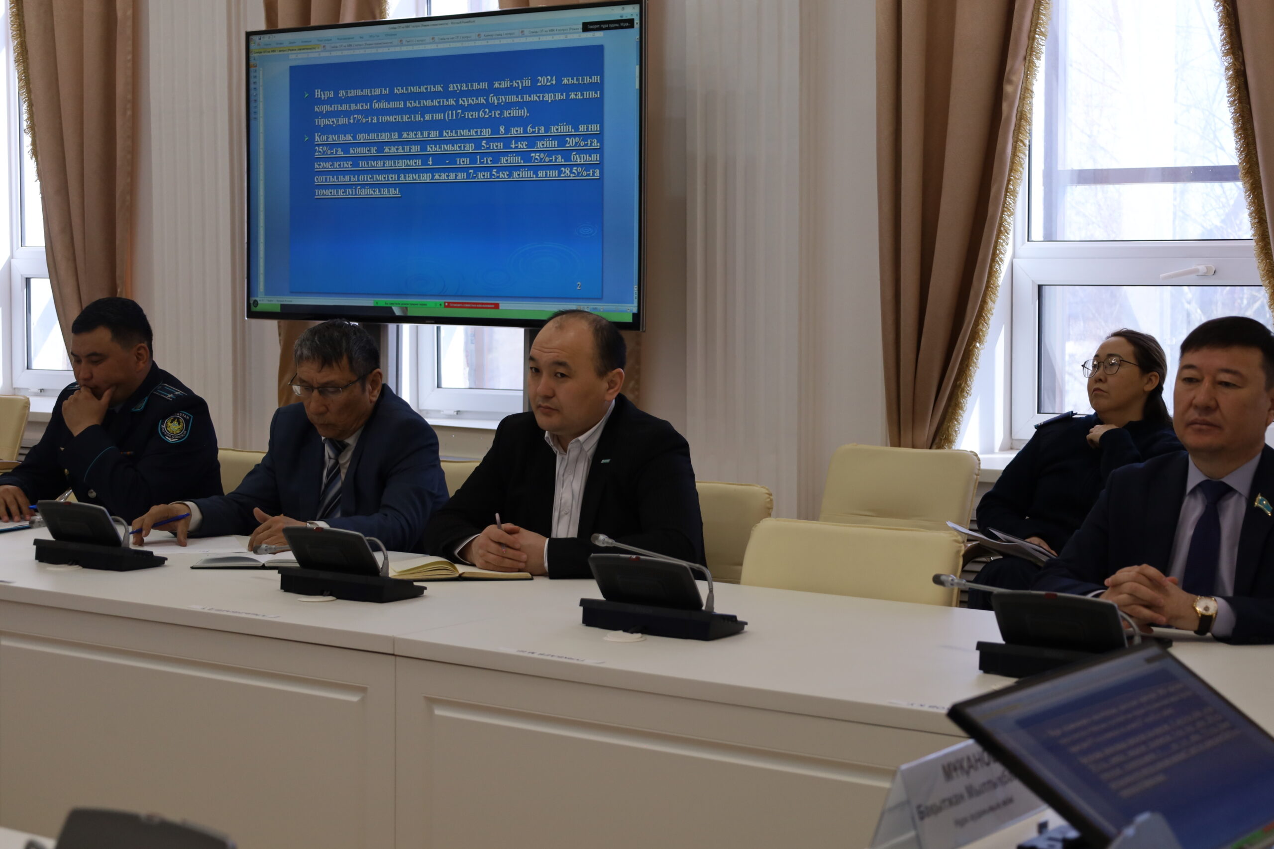 - Об итогах работы отдела полиции Нуринского района и местной полицейской службы отдела полиции района по профилактике правонарушений и преступлений на территории Нуринского района за 2024 год;