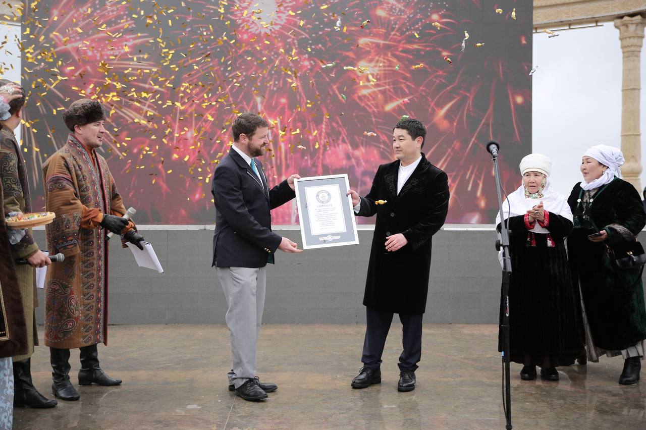 – Мы являемся свидетелями исторического момента в день празднования Наурыз мейрамы. Сегодня мы раскрыли миру глубокую историю и богатое культурное наследие казахского народа, наши национальные традиции. В священном Мангистау установлен мировой рекорд по казахскому национальному костюму. Поздравляю всех наших соотечественников с этим большим успехом! Выражаю благодарность инициативной группе, занимающейся популяризацией культуры казахского народа, представителям Книги рекордов Гиннесса, приехавшим специально из Лондона, и всем участникам, внесшим свой вклад в установление рекорда!
