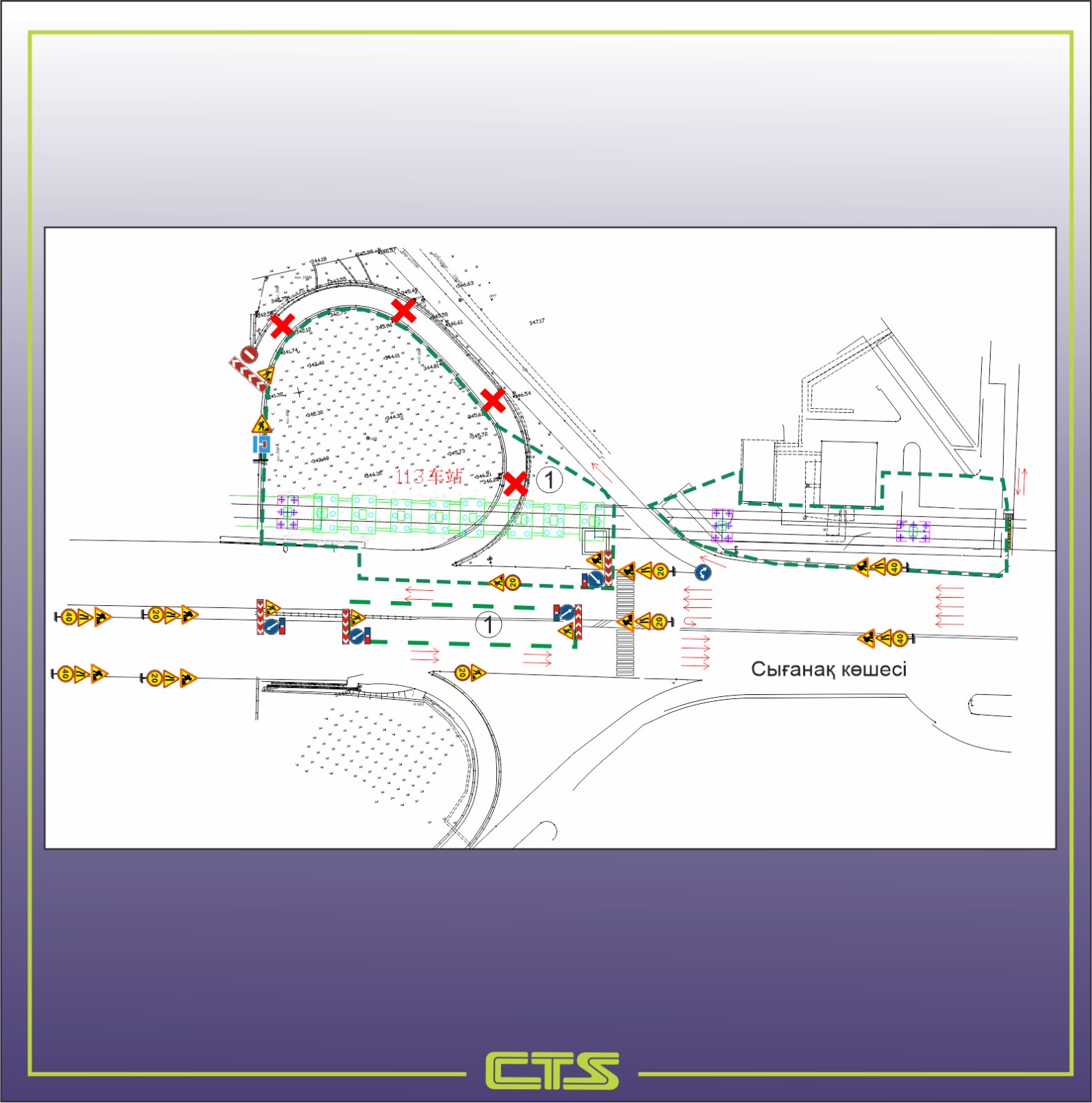 – с 25 марта по 25 апреля – по ул. Сыганак на развязке с пр. Мангилик ел в направлении ул. Туркестан для выполнения работ по строительству фасада станции 113, производится частичное сужение двух полос и занятие крайних левых полос в обоих направлениях на разрыве разворота автодороги;