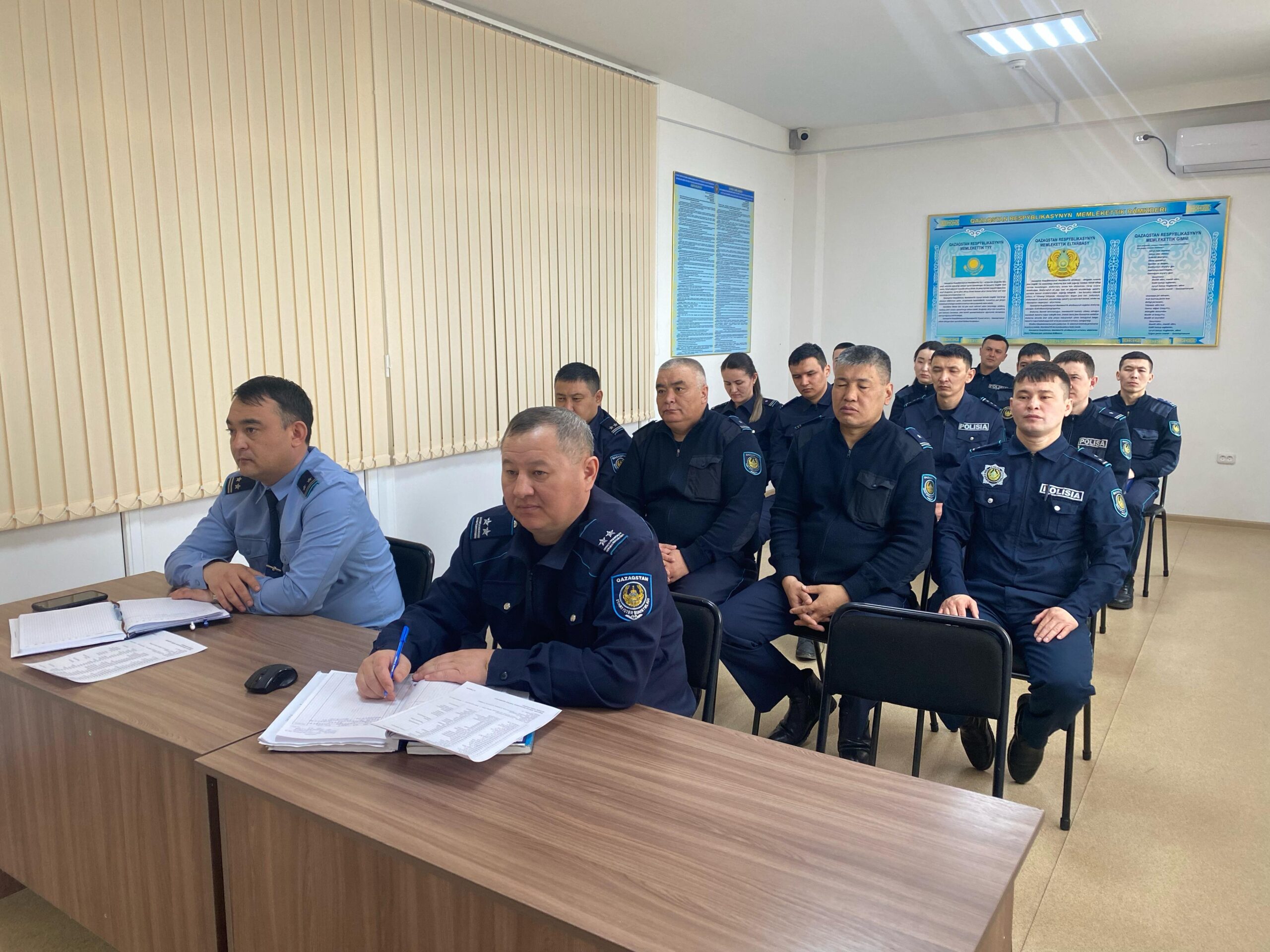 В совещании принял участие личный состав Отдела полиции Каратобинского района Департамента полиции Западно-Казахстанской области.