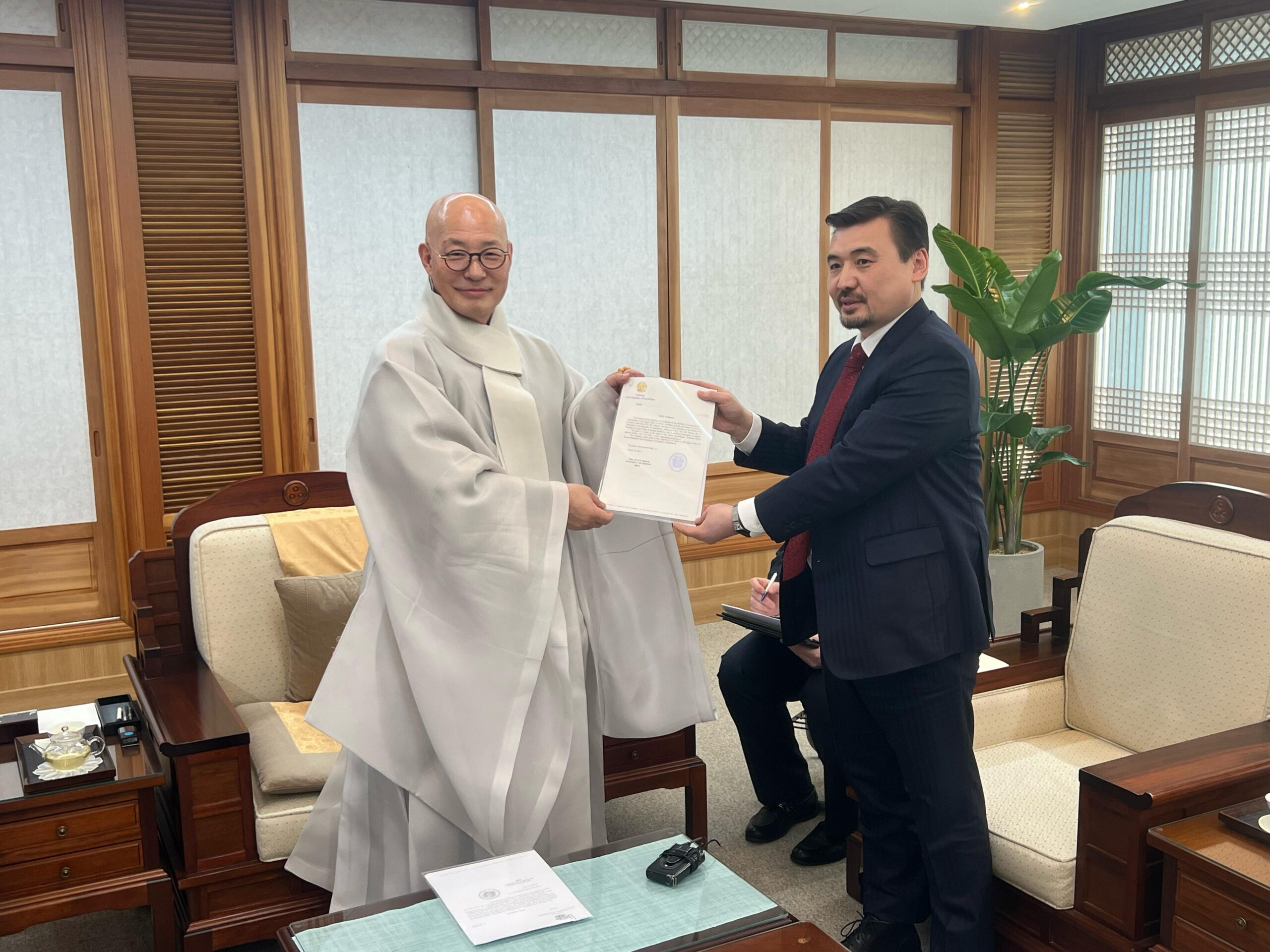 Сеул, 19 марта 2025 года – Посол Казахстана Нургали Арыстанов провел встречу с Президентом Ордена корейского буддизма «Чогие» почтенным Джин Ву.