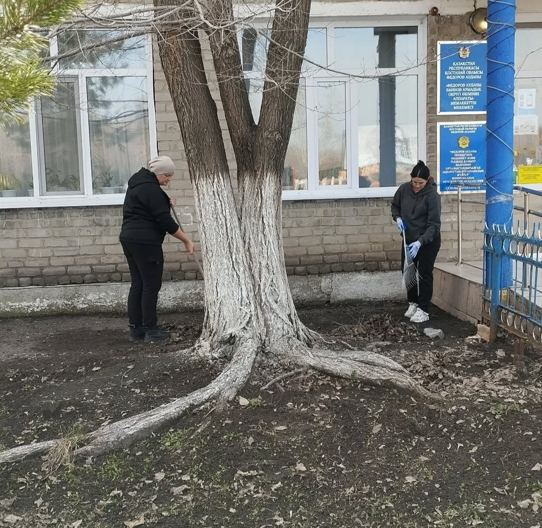 В рамках общенациональной программы “Таза Казастан” проведена уборка территории возле акимата.