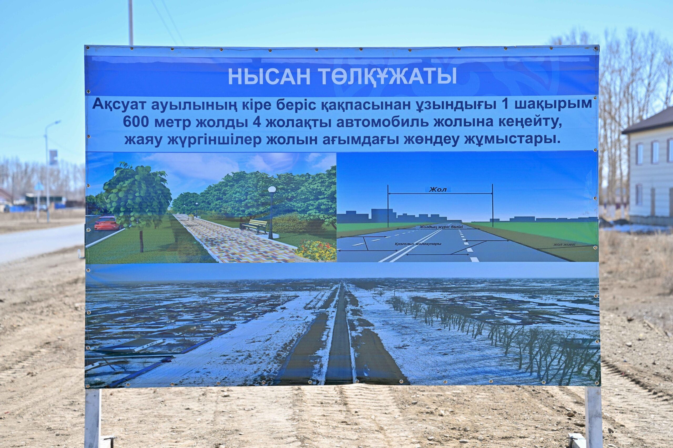 Глава региона начал рабочую поездку в район с села Аксуат. В настоящее время продолжается работа по модернизации основных улиц районного центра – села Аксуат. От въезда по улице Кабанбая до Центрального стадиона протяженностью около 2 км дорожное полотно расширяется до 4-х полосного. Ширина дороги увеличится до 13 метров, будет уложено асфальтовое покрытие. Кроме того, акиму области был презентован проект по строительству и освещению тротуаров по улице Кабанбая. В рамках проекта будет отремонтирована пешеходная дорога протяженностью 1,5 км, вдоль улицы будет установлено около 200 световых столбов протяженностью 6 км.