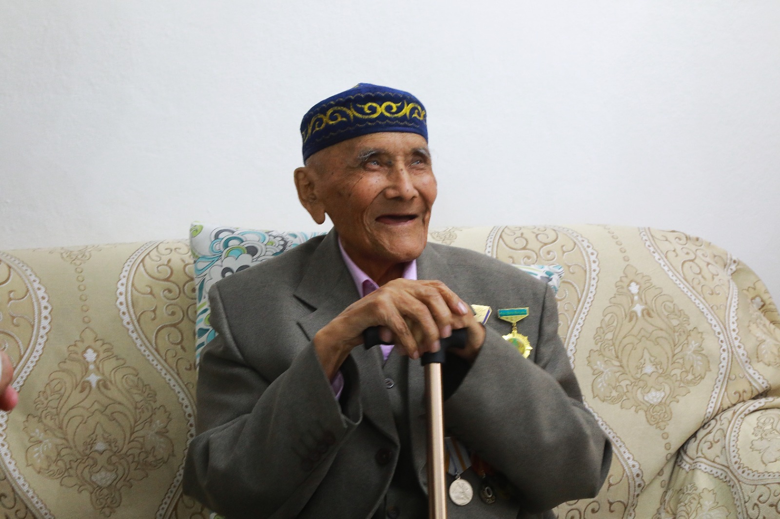 Глава района передал аксакалу специальное поздравление акима области Нурлыбека Налибаева, вручил Благодарственное письмо от имени областного акимата, а также Грамоту Почета – высшую награду района. В знак особого уважения долгожителю на плечи был наброшен традиционный чапан.
