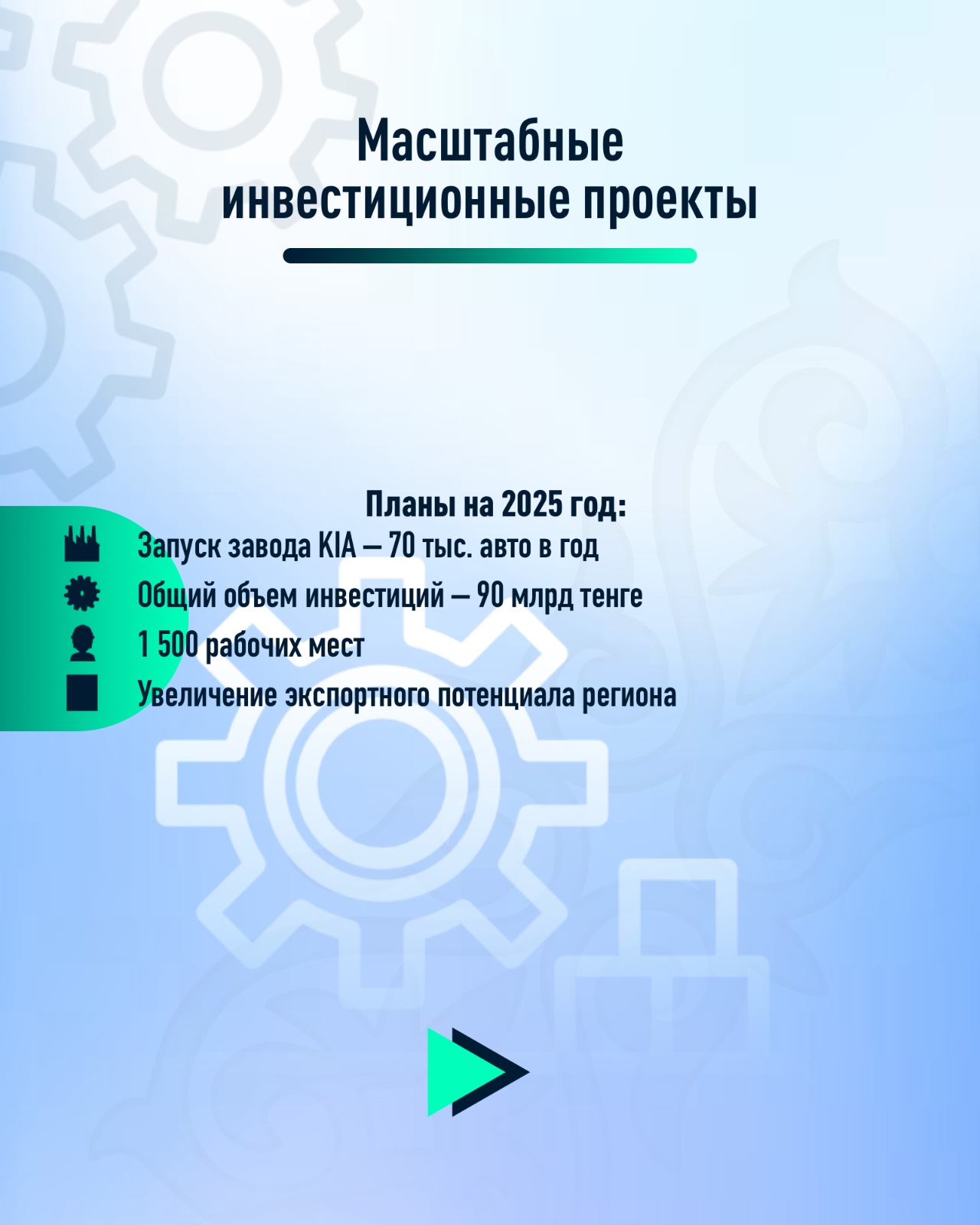Таким образом, наличие Индустриальных зон в регионе позволяют инвесторам получить удобные условия для работы, включая инфраструктурное обеспечение, транспортную доступность и другие преференции. А регион становится привлекательным для привлечения инвесторов в ключевые отрасли реального сектора, что в конечном итоге сформирует мультипликативный эффект в виде поступлений в бюджет, создание новых рабочих мест, что в целом обеспечит экономический рост на многие годы вперед.